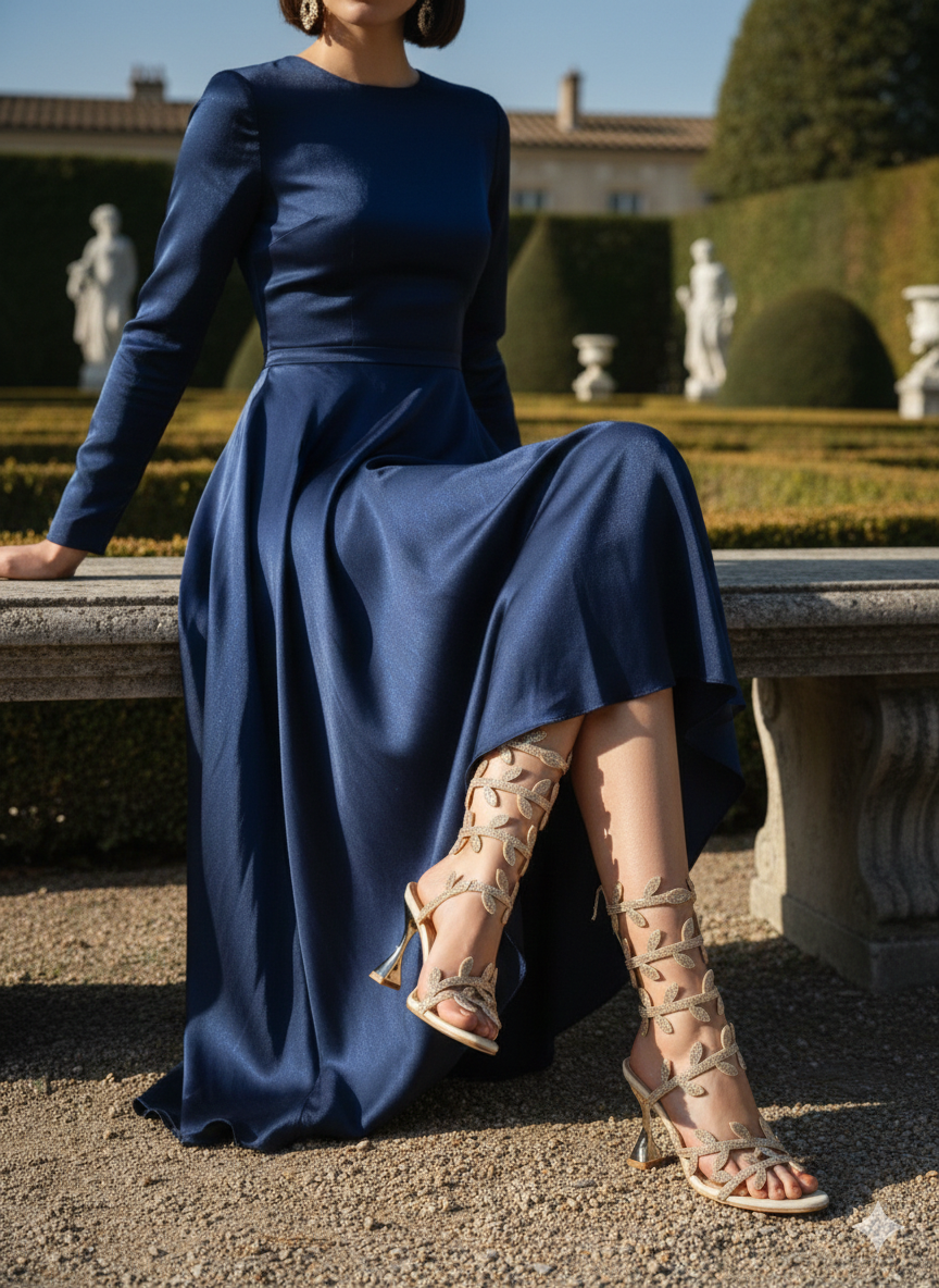 Add a touch of refined glamour to your wardrobe with these Crystal Leaf Wrap Heels. Beautifully crafted with intricate leaf-shaped straps, each detail is adorned with shimmering crystals that catch the light from every angle. The elegant wrap-around ankle design creates a graceful, secure fit while enhancing the overall silhouette of the foot.